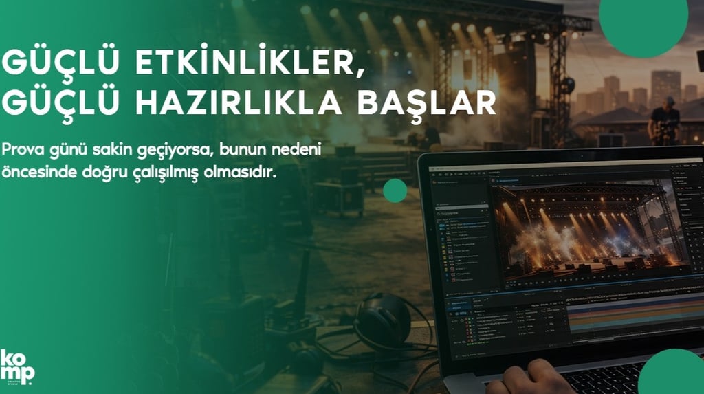 Uygulama öncesi hazırlık, etkinlik tasarımının en kritik aşamalarından biridir. Sahne ölçüleri, ekran oranları, renk dengeleri ve ışık koşulları bu aşamada netleşir. Amaç, sahada çözüm üretmek değil; sahaya hazır olmaktır.